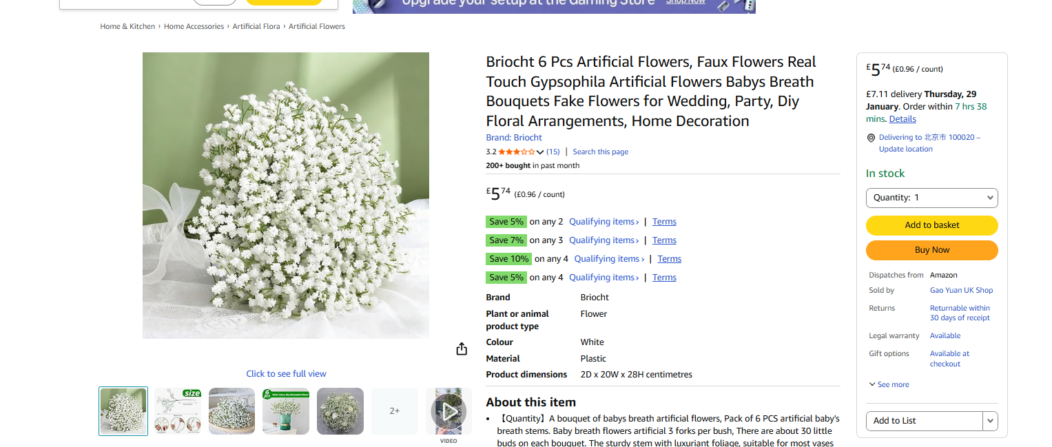 | Z25 | UK | 2 | 10 | 700 | gypsophila artificial flowers | N/A | 1804 |