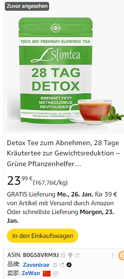 | M17 | DE | 1 | 10 | 800 | Detox Tee Zum Abnehmen | N/A | 2193 |
